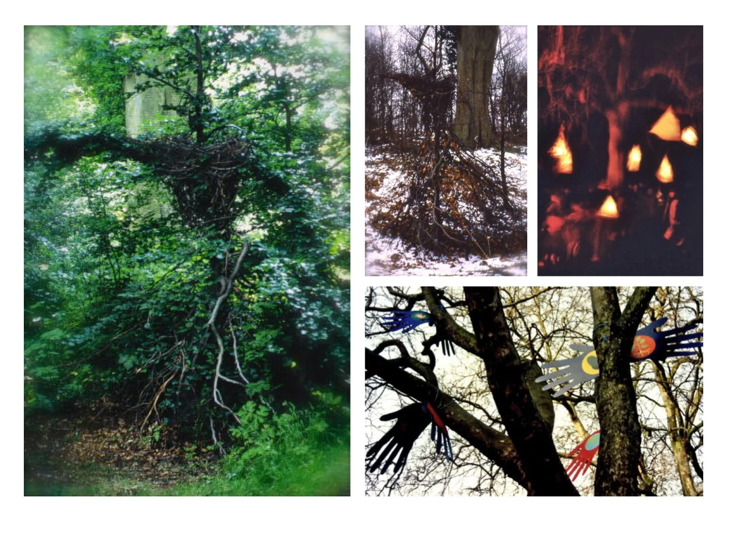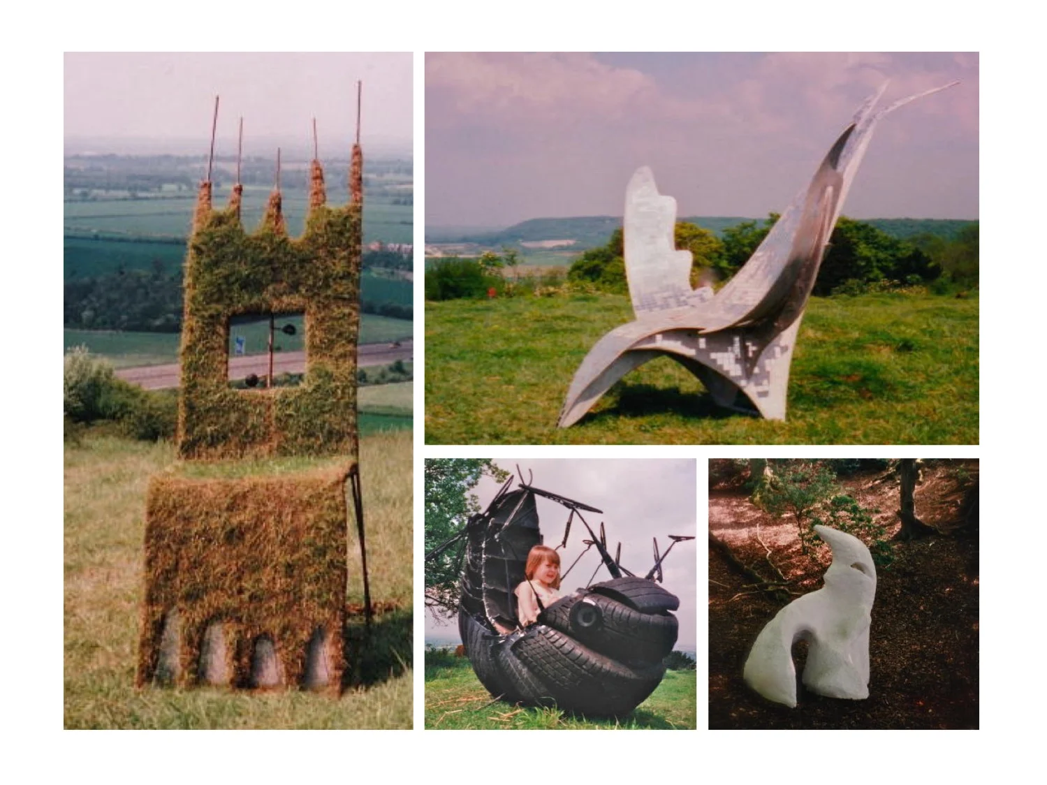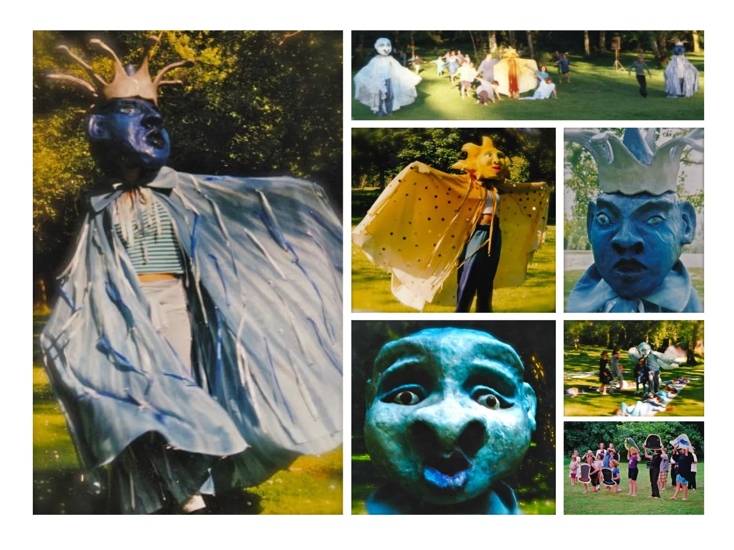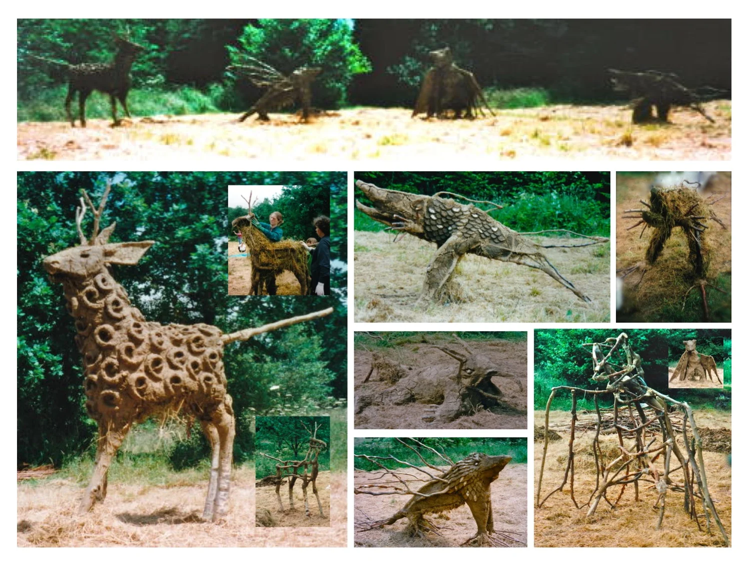 Site specific sculpture commission, visual arts school project, community costume & prop design for Coral Arts combined arts performance event in West Woods Wiltshire.