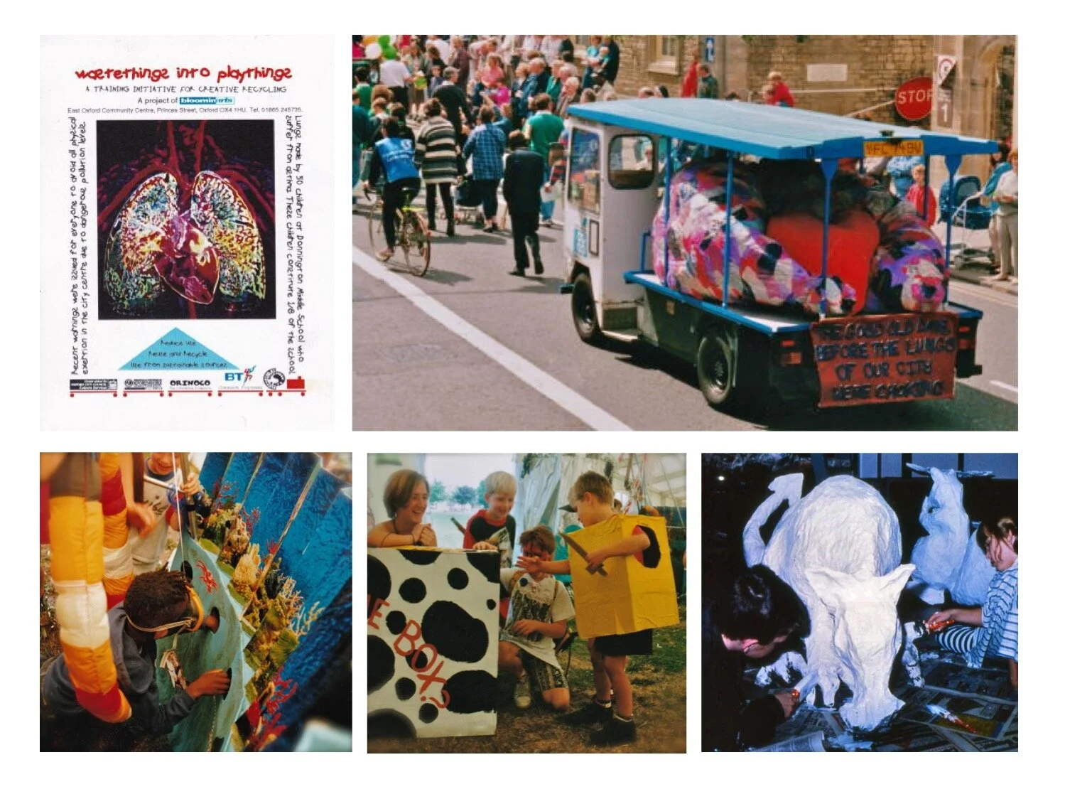 Wastethings into Playthings was a year long community education programme run by the Oxfordshire Scrapstore to promote awareness of the need to reduce waste and reuse / recycle more. Engagement with local schools created work and performances that were featured at landmark community events including the Lord Mayor’s Parade & Fun in the Park.
