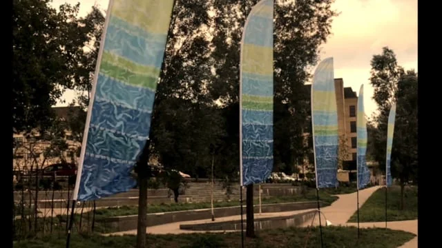 The inspiration for Flood Flags is the historic depth markings under Ha’penny Bridge and visually mapping a sense of the volume of water that collected during these events. The flags were designed to be sited in the new flood conveyance park a little further down the river translating the depths to demonstrate how the body of water would now be dissipated.
