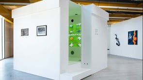 In itself, the white cube makes totemic reference to the aggressive capitalist consumerist marketisation of the artworld in the 90s by the likes of Saatchi & Joplin but containing an immaterial immersive experience that cannot be owned. At the same time connotation with the asylum space is apt when the work is both about and uses manipulation of human behaviour in the orchestration of phenomenological experiences for the audience.